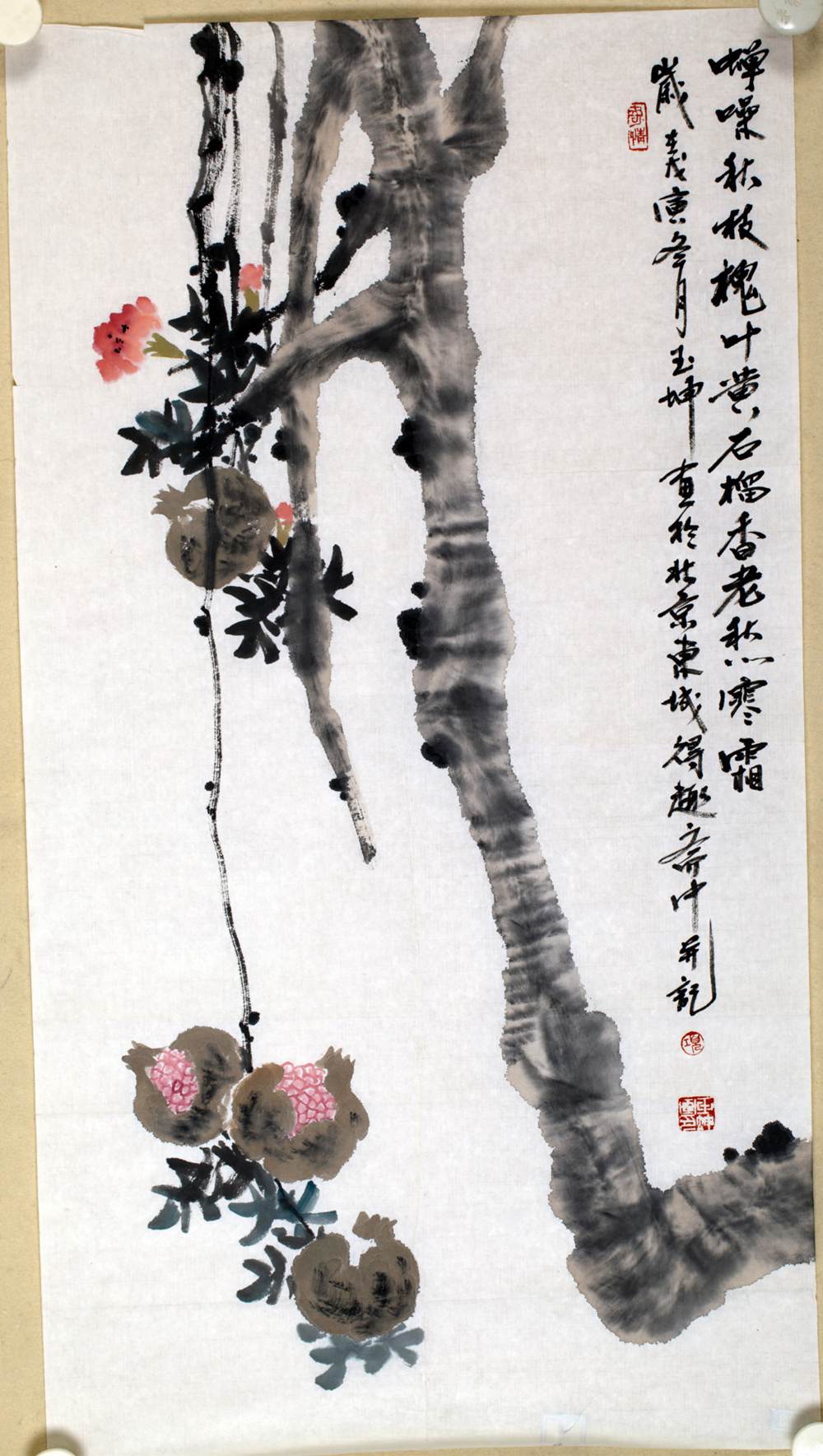 蝉噪秋枝槐叶黄,石榴香老愁寒霜