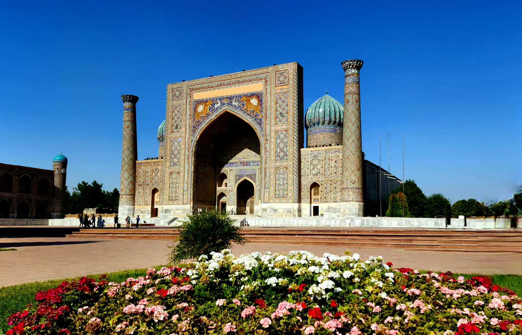 萨马尔罕的雷吉斯坦广场上矗立着三座著名的经学院